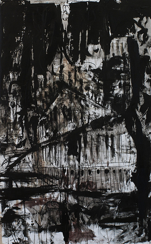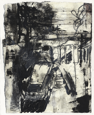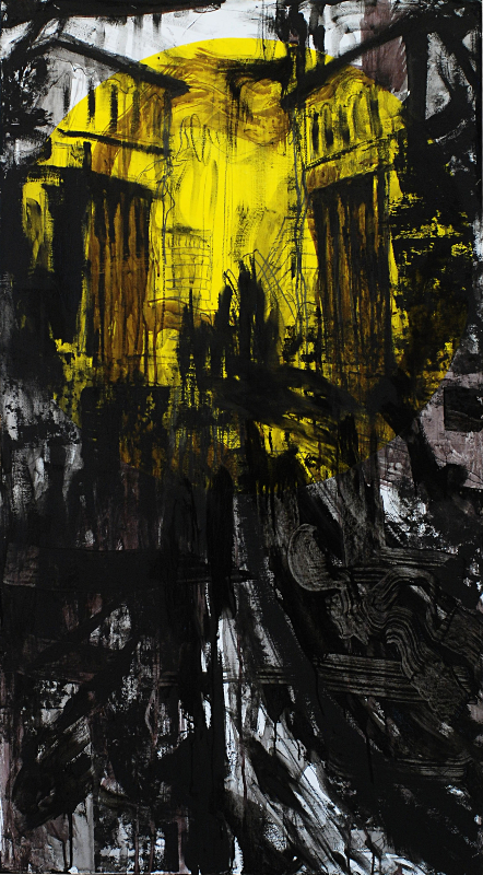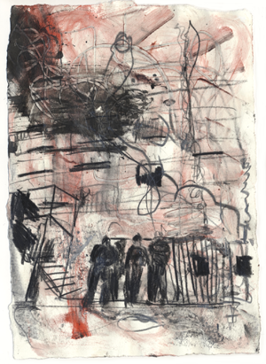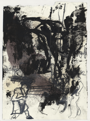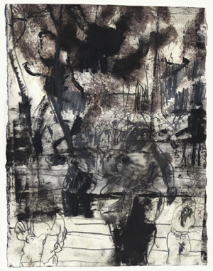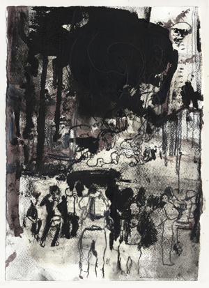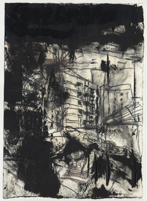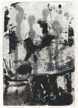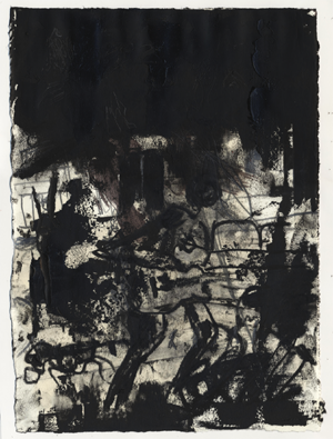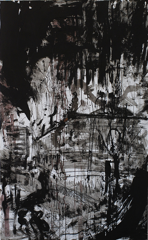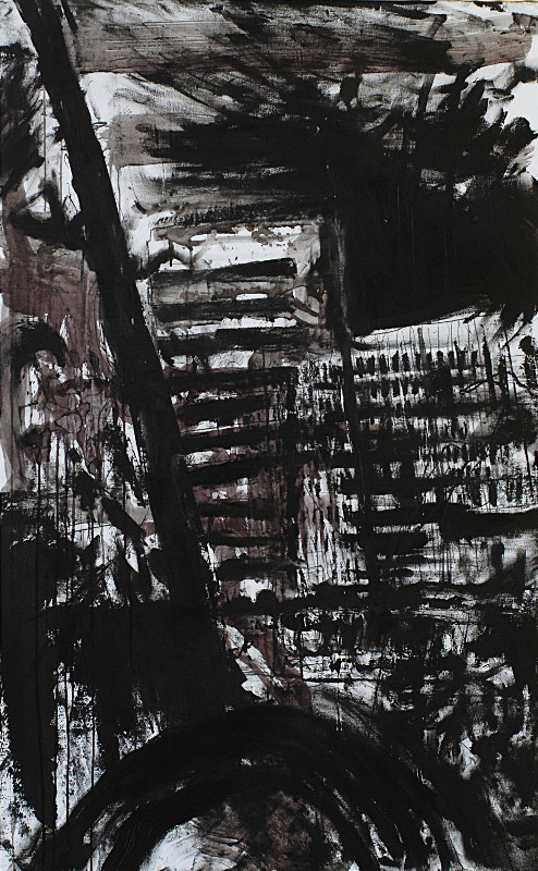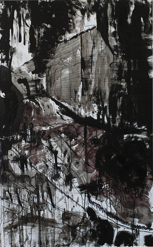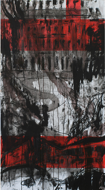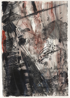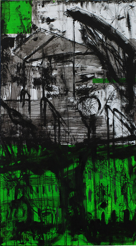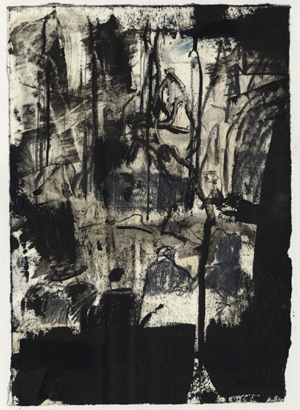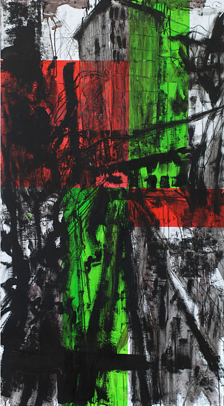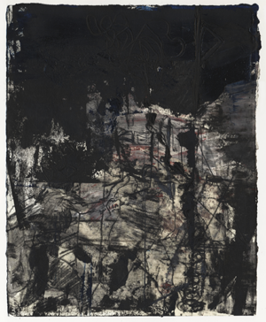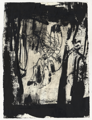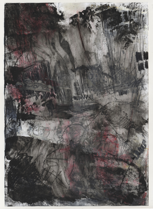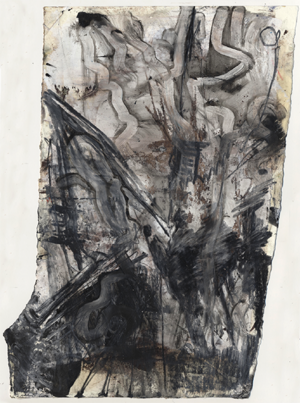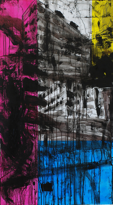 ca. 60 x 120 cm, Graphit, Fettkreide, Druckfarben, Werkdruck auf Sperrholz