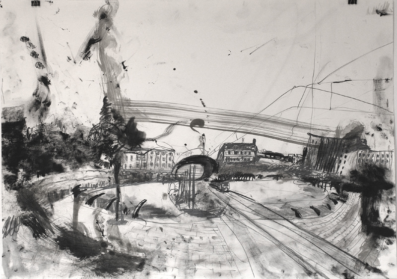 In der Zeichnung bin ich dort angelangt, wo die Linien ihren freien Lauf entfalten können. Anlass oder Beginn des Zeichens kann ein visueller Reiz, eine gesehene Scene oder ähnliches sein.